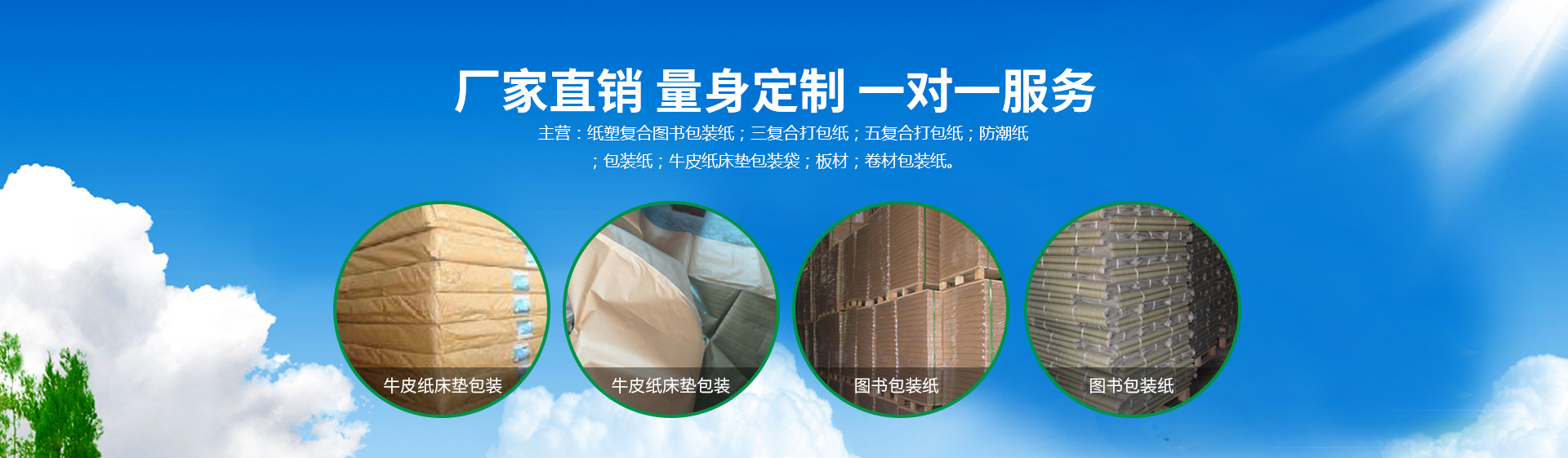 紙塑復合圖書包裝紙;三復合打包紙;五復合打包紙;防潮紙;包裝紙;牛皮紙床墊包裝袋;板材 ;卷材包裝紙。